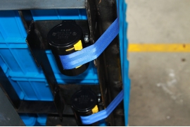● The binding strap is installed on the right side of the forklift guard rail frame (the right-hand side of the forklift driver).